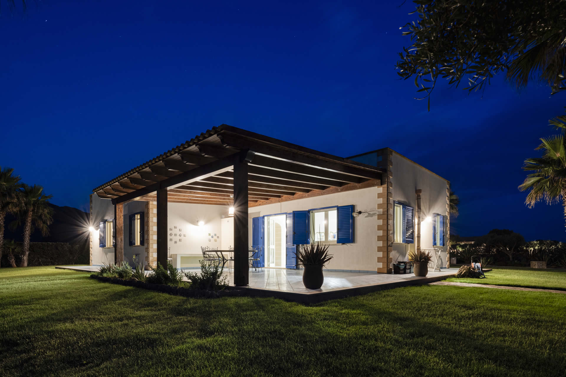 Circondata da un giardino lussureggiante, la villa combina il fascino autentico dell'architettura siciliana con la raffinatezza e il comfort.
