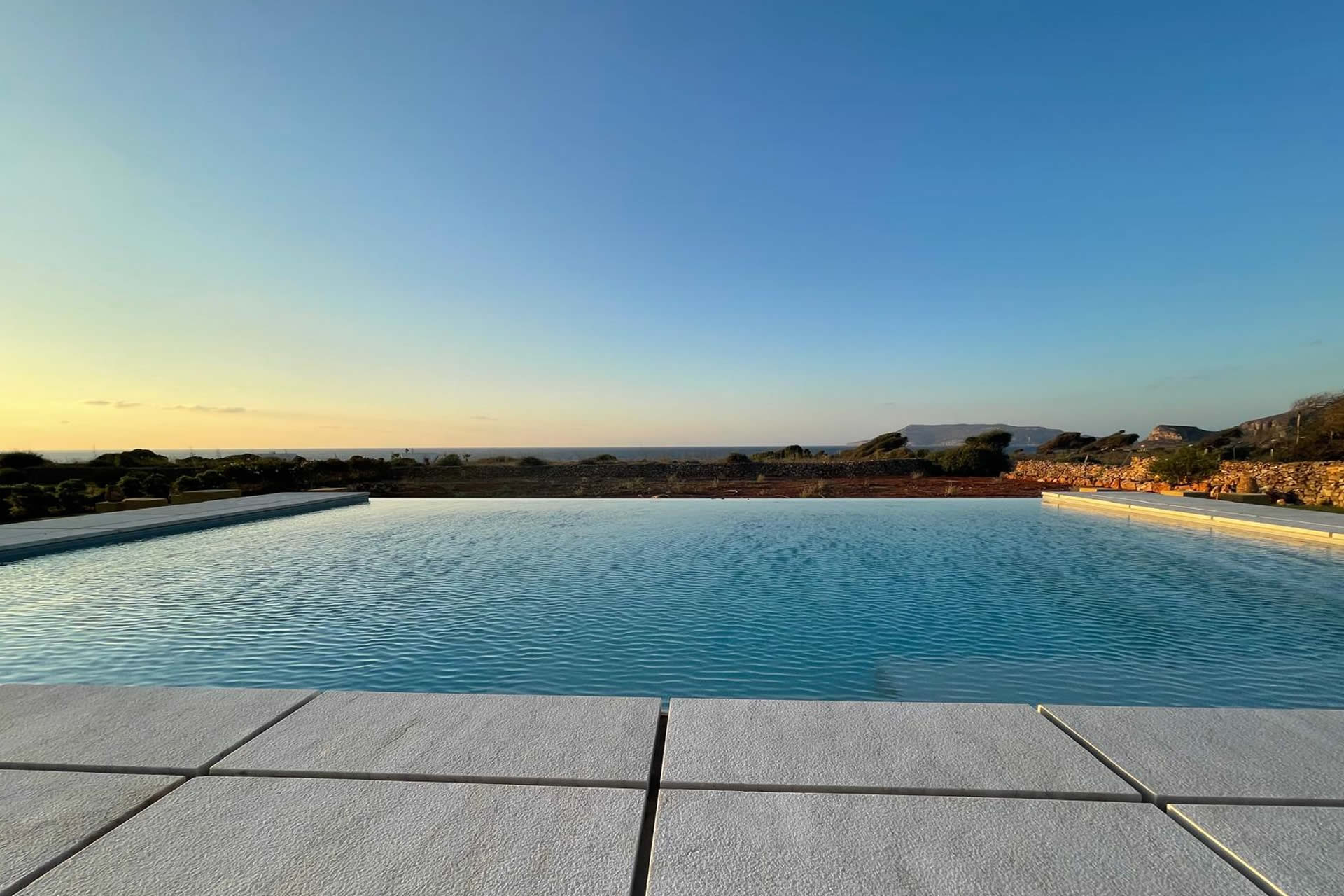 Villa Ficurinia immersa nel verde e nella tranquillità dell'isola dove rilassarti in un contesto esclusivo e panoramico, la piscina regala una vista impareggiabile sull'arcipelago delle Egadi. L'effetto a sfioro crea un'illusione perfetta di continuità tra l'acqua e l'orizzonte, offrendo una sensazione di libertà e armonia con la natura circostante.