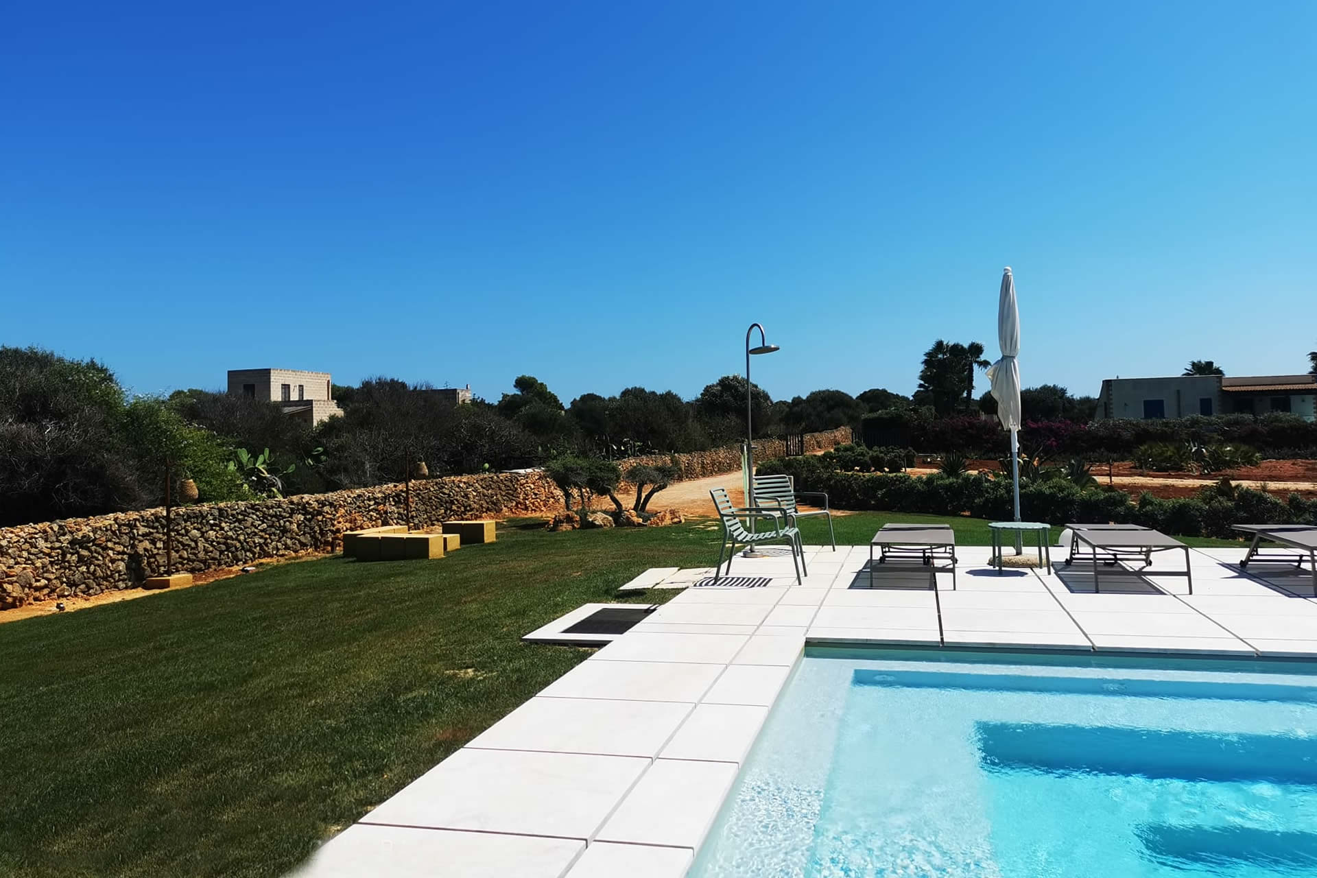 La piscina è a disposizione di tutte le ville di Cala Virdi, garantendo spazi ampi e momenti di relax ideali per coppie, famiglie o gruppi in cerca di una vacanza a Favignana tra comfort e bellezza autentica.