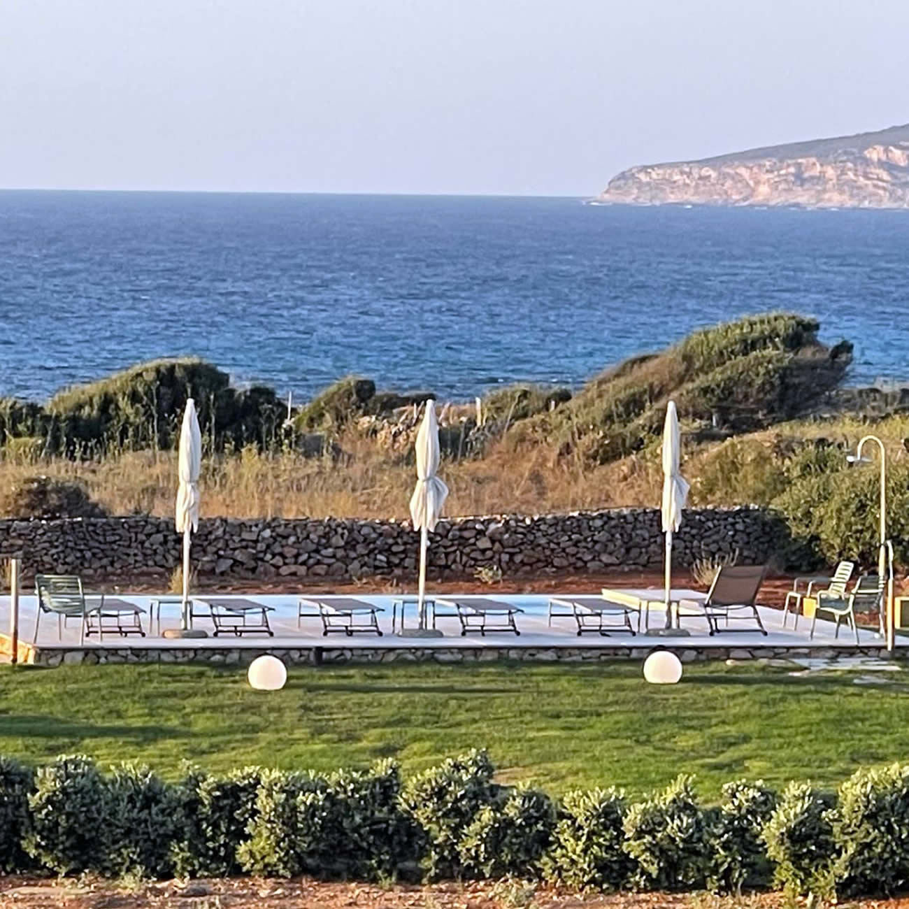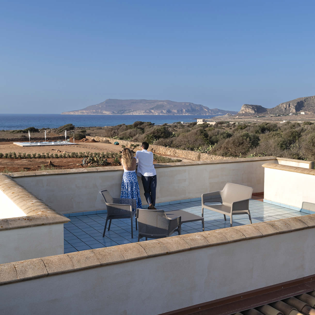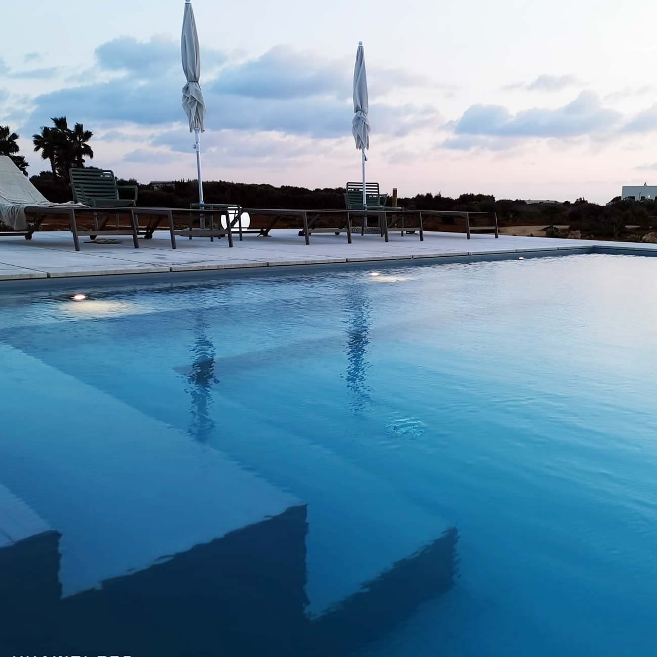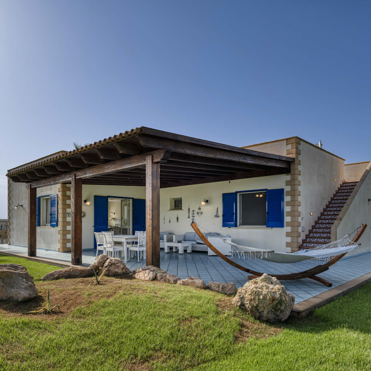 La piscina, in condivisione con le altre ville del comprensorio Ville di cala Virdi è situata nel cuore della proprietà, si trova in una posizione privilegiata che offre una vista mozzafiato sull'incantevole isola di Levanzo, una delle gemme dell'arcipelago delle Egadi.